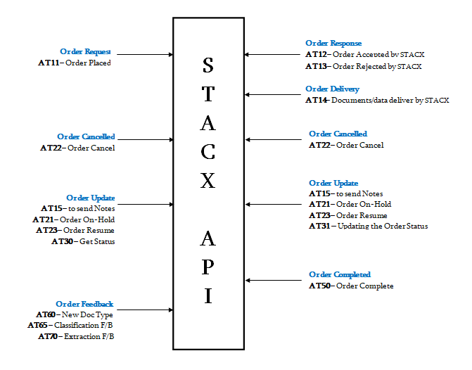 6. Upon completion of the order, STACX will send Order Completed (CLIENTAPI Event AT50) to the order to indicate the order is complete.